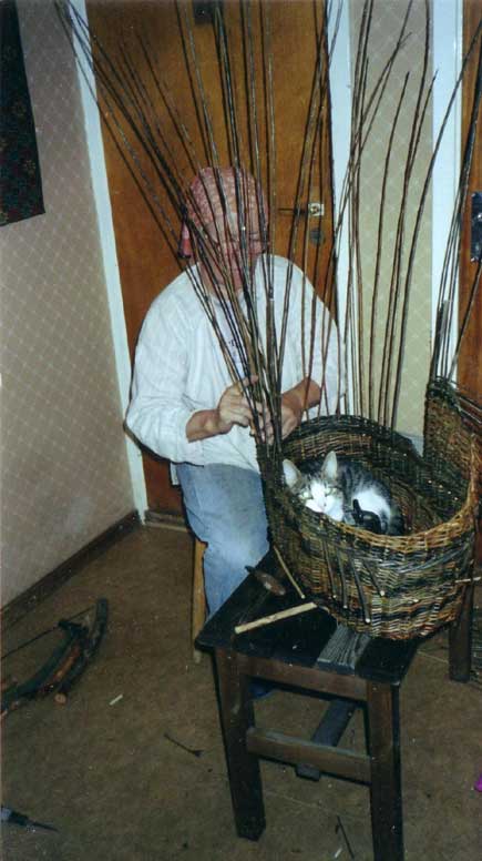 Mamma får sällskap av huskatten medan hon flätar.