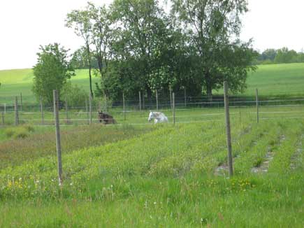 Hästarna ligger och tittar ut över pilen som har börjat växa.