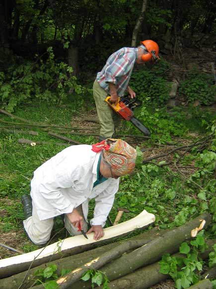 Mamma skalar av barken.