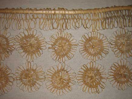 Gaffelvirkad gardin gjord av bast efter gammalt mönster.